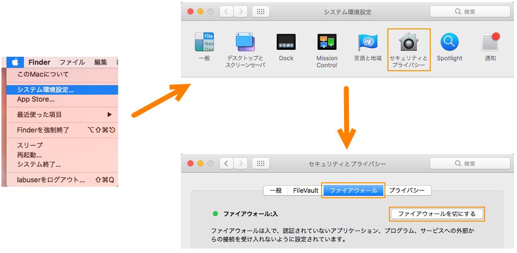 ファイアウォールをオフにするには、以下の手順を実行します。