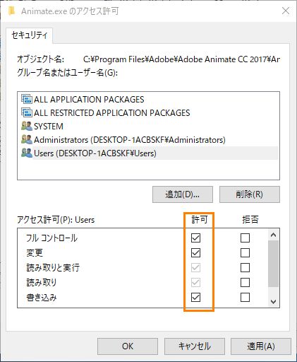 Adobe Animate 2017 を右クリックし、以下のパスで「プロパティ」を選択します。