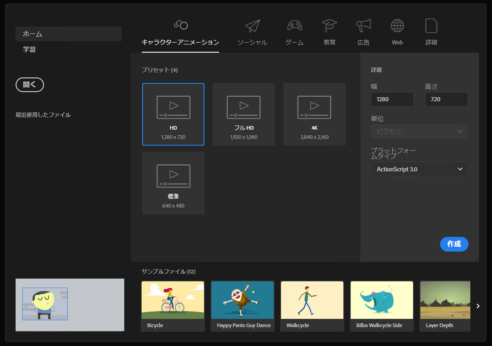 13. Animate で Flash CS6 ファイルを開く