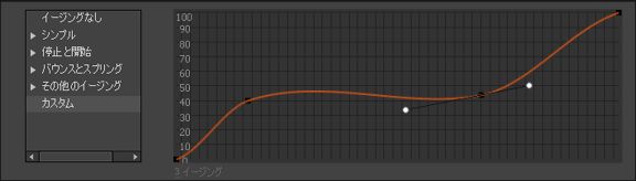 - 左側のウィンドウで「カスタムイージング」を選択し、イージング曲線を変更することで、カスタムイージングを作成します。詳しくは、カスタムイージング曲線の作成と適用を参照してください。