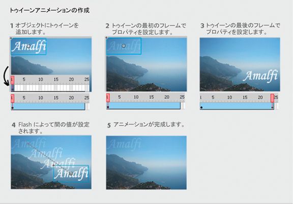 タイムラインの基本事項とプロパティの編集。モーショントゥイーンの操作を開始する前に、タイムラインの基本的な使用方法とプロパティの編集方法を十分に理解しておきます。フレームとキーフレームを参照してください。