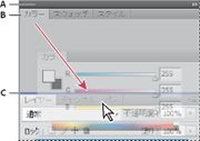 - パネルのサイズを変更するには、パネルのいずれかの側をドラッグします。Photoshop のカラーパネルのように、ドラッグしてもサイズ変更できないパネルもあります。