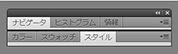 - パネルまたはパネルグループをスタックから解除してフローティング状態にするには、そのタブまたはタブ領域(タブの横にある空の領域)あるいはタイトルバーをスタックの外にドラッグします。