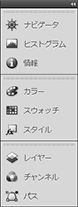 雑然としたワークスペースにならないように、パネルをアイコン化できます(あらかじめ用意されたワークスペースには、パネルが最初からアイコン化されているものもあります)。