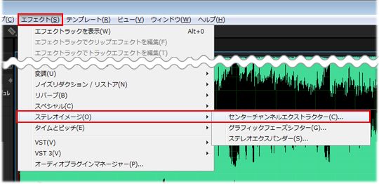エフェクト/ステレオイメージ/センターチャンネルエクストラクターを選択します。