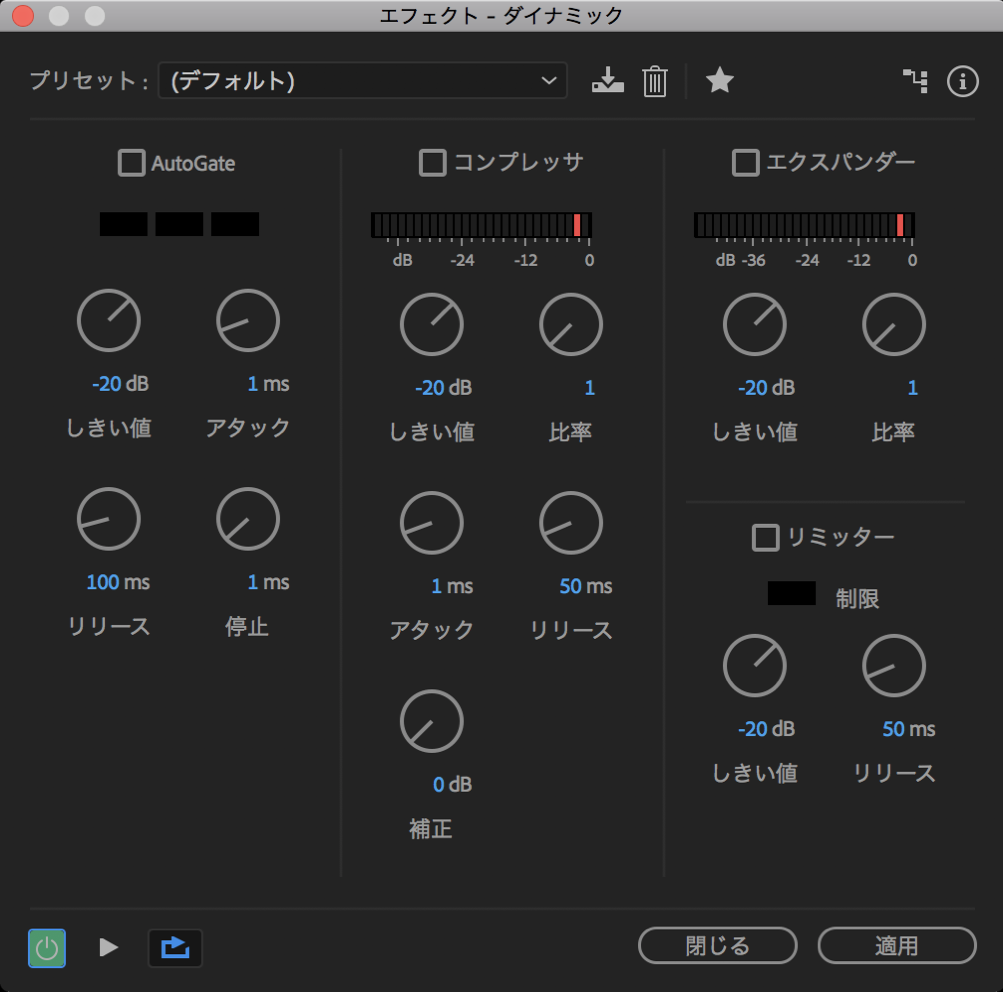 1. 振幅および圧縮エフェクトをオーディオに適用する
