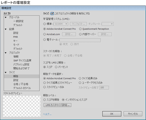 Adobe Captivate 5 では、マルチメディアや小テスト、インタラクティビティなどを備えたプロ品質の e ラーニングコンテンツをプログラミングなしですばやく作成・管理することができます。使いやすいユーザーインターフェイス、カスタマイズ可能なウィジェット、プロジェクト全体のフォーマット、および高度なコラボレーションワークフローにより、効率的に作業できます。