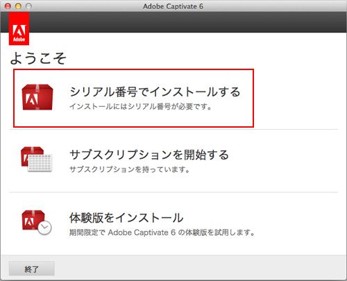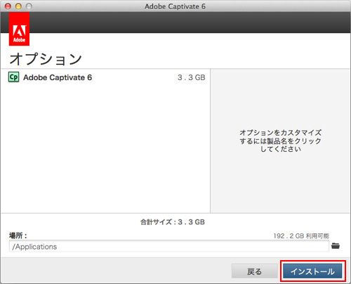 B. Mac OS 版 Captivate 6 のインストール手順