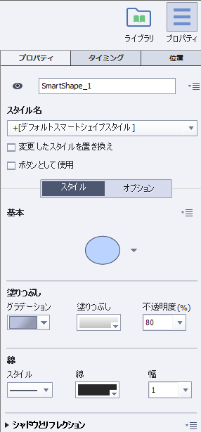 スライド内の任意のオブジェクトをクリックし、新しいデザインのプロパティインスペクターをご覧ください。タブやプレビューボタンの外観が新しくなりました。プロパティでスタイルを適用し、スタイルプレビューオプションを使ってプレビューできます。スタイルプレビューは、3 つのユニークなスタイルのドロップダウンを表示します。