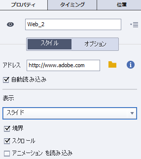 Web オブジェクトはネイティブのオブジェクトになりました。OAM ファイル(Adobe Edge Animate) pdf、および gif ファイルを参照できます。「自動読み込み」オプションを使用すると、「出力」にファイルを自動読み込みできます。「自動読み込み」が有効になっていない場合、ユーザーは「再生」ボタンをクリックしてオブジェクトを表示する必要があります。