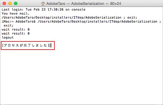 指定した場所にパッケージが作成されます。作成されたパッケージに含まれている「RemoveVolumeSerial」を使用して、ライセンス認証済みのアプリケーションのライセンスを削除します。ボリュームシリアル番号を削除するには、管理者権限が必要です。