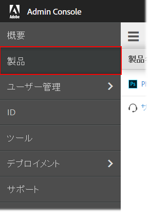 Admin Console にログインし、「製品」スナップインを確認します。「0 GB」と表示されている場合、その製品プランのグループに登録されているユーザーは Adobe Fonts、モバイルアプリ、クラウドサービス、ストレージは使えません。