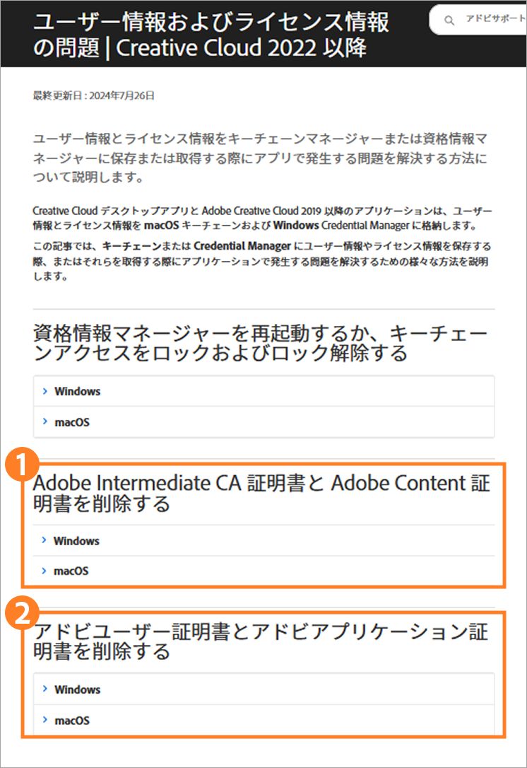 ユーザー情報とライセンス情報に関する問題 | CC 2019 以降 を開き、下記の 2 項目を実施します。