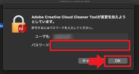 以下のメッセージが表示されたら、macOSの管理者パスワードを入力し、「OK」をクリックします。