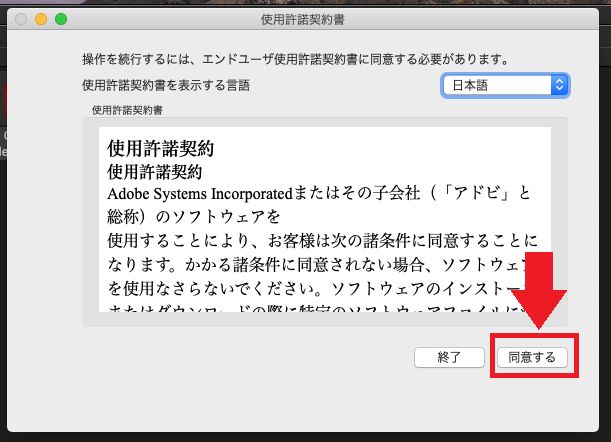 使用許諾契約書が表示されたら、「同意する」をクリックします。