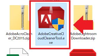 ダウンロードされた「AdobeCreativeCloudCleanerTool.exe」を開きます。