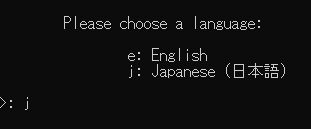 起動して「Please Choose Language」と表示されたら、アルファベットの" j "を入力しEnterキーを押します。