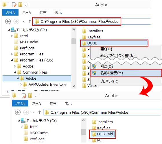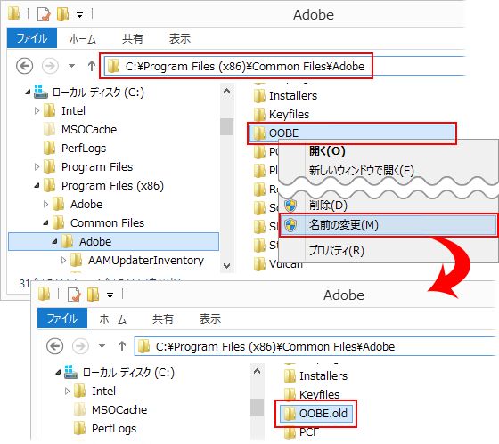 PC/ローカルディスク (C:)/Program FIles/Common Files/Adobe/OOBE |