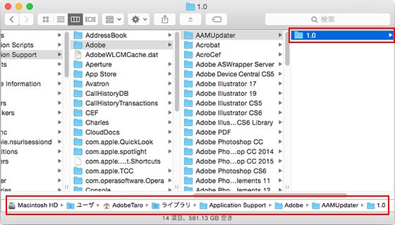 Macintosh HD/ユーザ/ "PCユーザー名" /Library/Application Support/Adobe/AAMUpdater/1.0 |