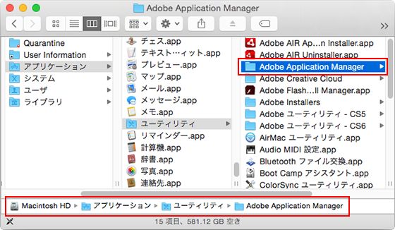 Macintosh HD/Application/Utility/Adobe Application Manager |
