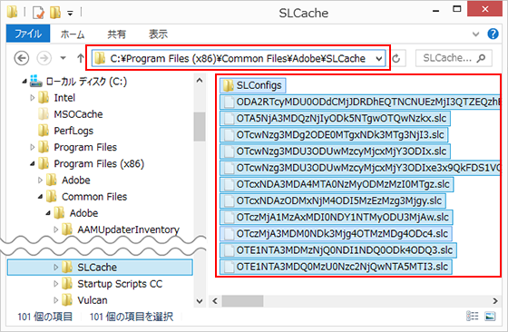PC/ローカルディスク (C:)/Program FIles/Common Files/Adobe/SLCache |