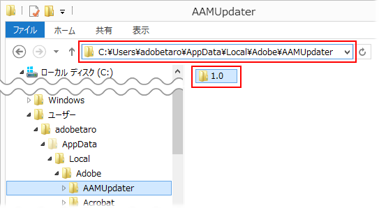 PC/ローカルディスク (C:)/ユーザー/"PCユーザー名"/AppData/Local/Adobe/AAMUpdater/1.0 |