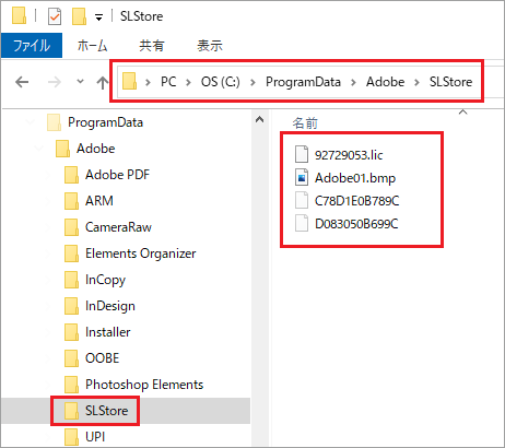 PC/ローカルディスク (C:)/Program Data/Adobe/SLStore |