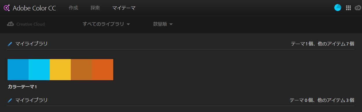 Photoshop CC などのデスクトップアプリケーションの Adobe Color テーマパネルや、Adobe Color CC Web ページにも作成したカラーテーマが反映されます。