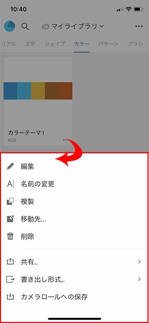 保存したカラーテーマの右下にある「…」アイコンをタップすると、カラーの編集やテーマ名称の変更などが行えます。