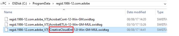 Creative Cloud の swidtag ファイルには、以下のように「CreativeCloudEnt」という文字列が含まれています。