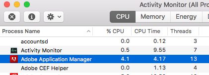 サインイン画面がタイムアウトとなってエラーせず、画面を閉じることができない場合、Macはアクティビティモニターから、Windowはタスクマネージャーから、Adobe Application Manager を強制終了します。
