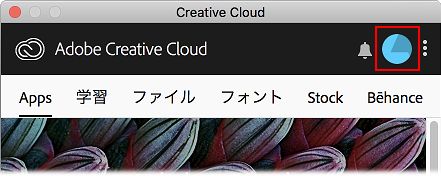 Creative Cloud デスクトップアプリケーションが起動したら、画面右上のプロフィールアイコンをクリックします。