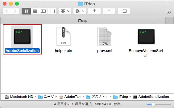 A-3 でデスクトップにコピーしたライセンスフォルダから「AdobeSerialization」をダブルクリックします。
