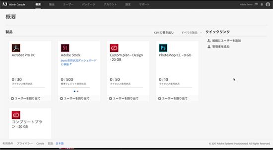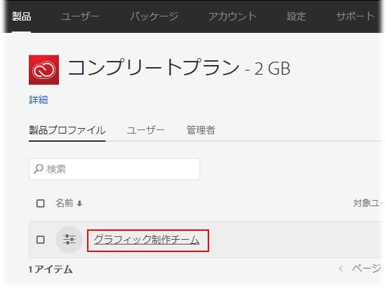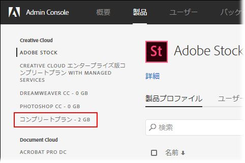 画面左から、作成した製品プロファイルのある製品プランを選択します。今回は Creative Cloud コンプリートプランを選択します。