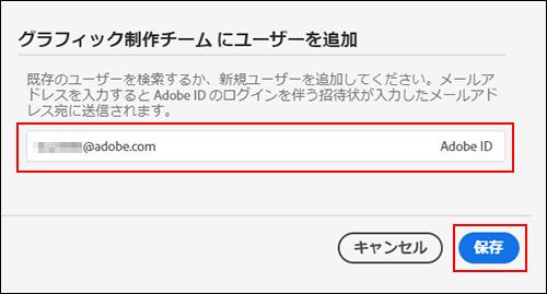 追加するユーザーのメールアドレスを入力し、「保存」ボタンをクリックします。