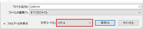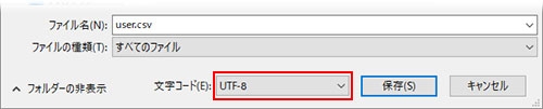 保存ダイアログボックスで、「文字コード」プルダウンリストから「UTF-8」を選択して保存します。