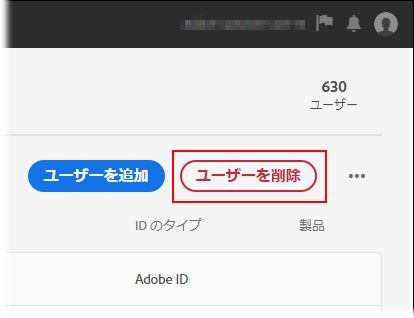 画面右上に表示される「ユーザーを削除」ボタンをクリックします。