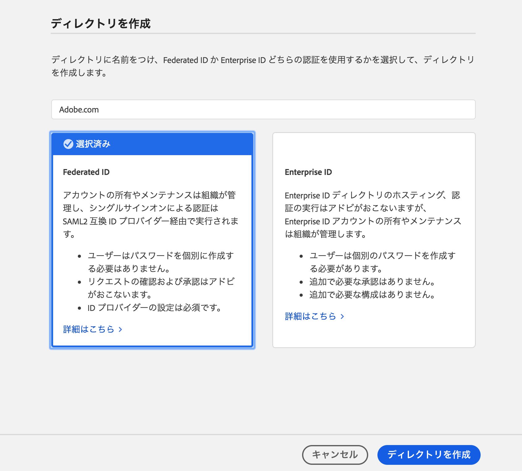 Federated ID 用のディレクトリの場合: