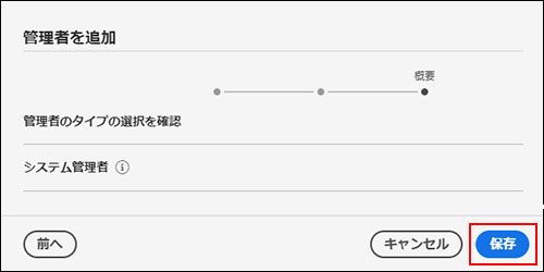 付与されている管理権限を確認し、問題がなければ「保存」ボタンをクリックします。