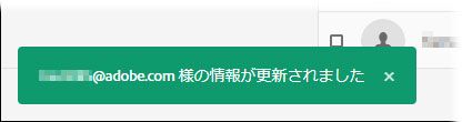 画面左下に「<アカウント名> 様の情報が更新されました」と表示されれば、変更は完了となります。