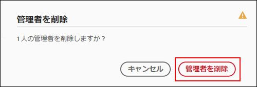 確認画面が表示されたら、「管理者を削除」ボタンをクリックします。