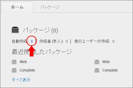 「ホーム」タブで「自動生成」の横に表示されている数字をクリックします。この数字は自動作成されたパッケージの数を示しています。