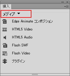 Edge Animate コンポジションやプラグインなどのメディアオブジェクトを追加することもできます。それ以外のオブジェクトも、挿入パネルの「一般」カテゴリか、挿入/メディア を選択することで追加することが可能です。