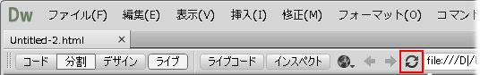 コードビューまたは関連ファイルに対して変更を加えた場合は、ドキュメントツールバーの「更新」ボタンをクリックするか、F5 キーを押して、ライブビューの表示を更新します。