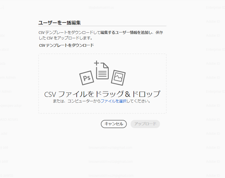 ユーザーを一括編集ダイアログボックスで、「CSV テンプレートをダウンロード」をクリックし、現在のユーザーリストを選択します。