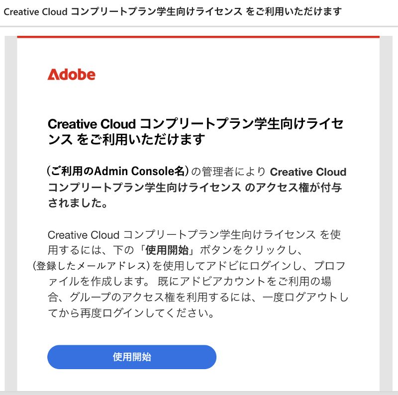 ※下記は Creative Cloud コンプリートプラン エンタープライズ版 学生向けライセンスを購入の場合