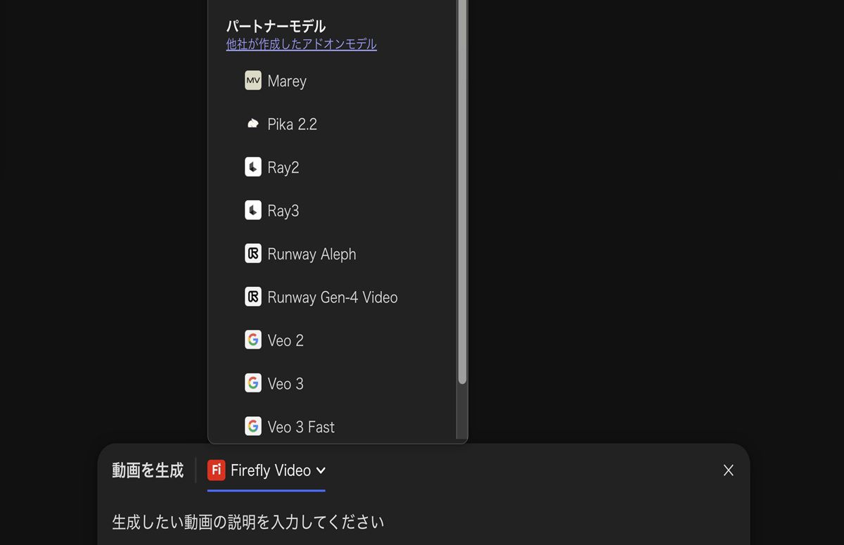 Firefly ボード(Beta)を使用すると、画像やスケッチのアップロード、Stock 画像の検索、または新しい画像の生成ができます。 次に、以下のいずれかを選択できます。