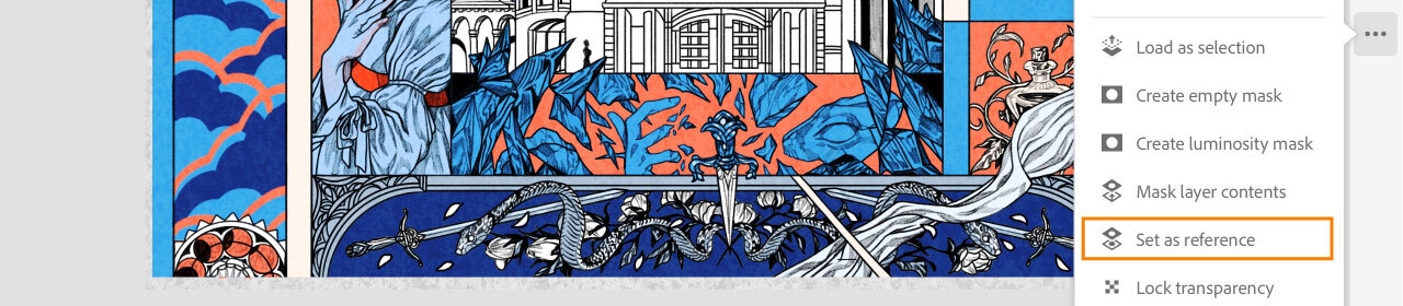 参照レイヤーを使用すると、レイヤーを作成してプライマリ参照として使用できます。その後、複数の新しいレイヤーを作成し、参照レイヤーの境界線を使ってアートを追加できます。