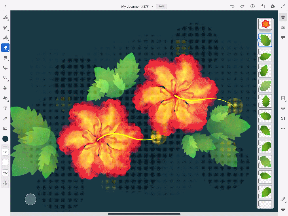 Fresco でアートワークを作成し、画像をベクター編集するには、共有/Illustrator に送信を使用して、アートワークを Adobe Illustrator に送信します。