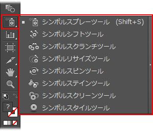 シンボルツールは、ツールパネルから選択して使用します。シンボルツールには、以下の 8 種類があります。